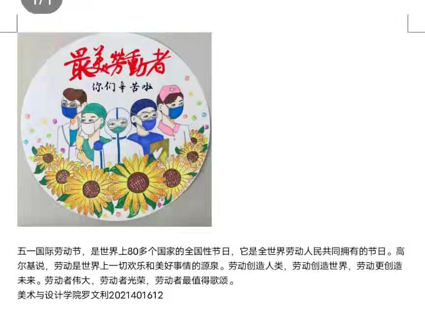 热爱劳动自古以来就是中华民族的优良美德。为了帮助学生树立“劳动最光荣”的观念;全面发展学生素质,培养良好的劳动习惯,明确劳动在实际生活中的重要性及劳动是无上光荣的。5月1日,yl6809永利官网线上举办“最美劳动者”创意设计大赛。