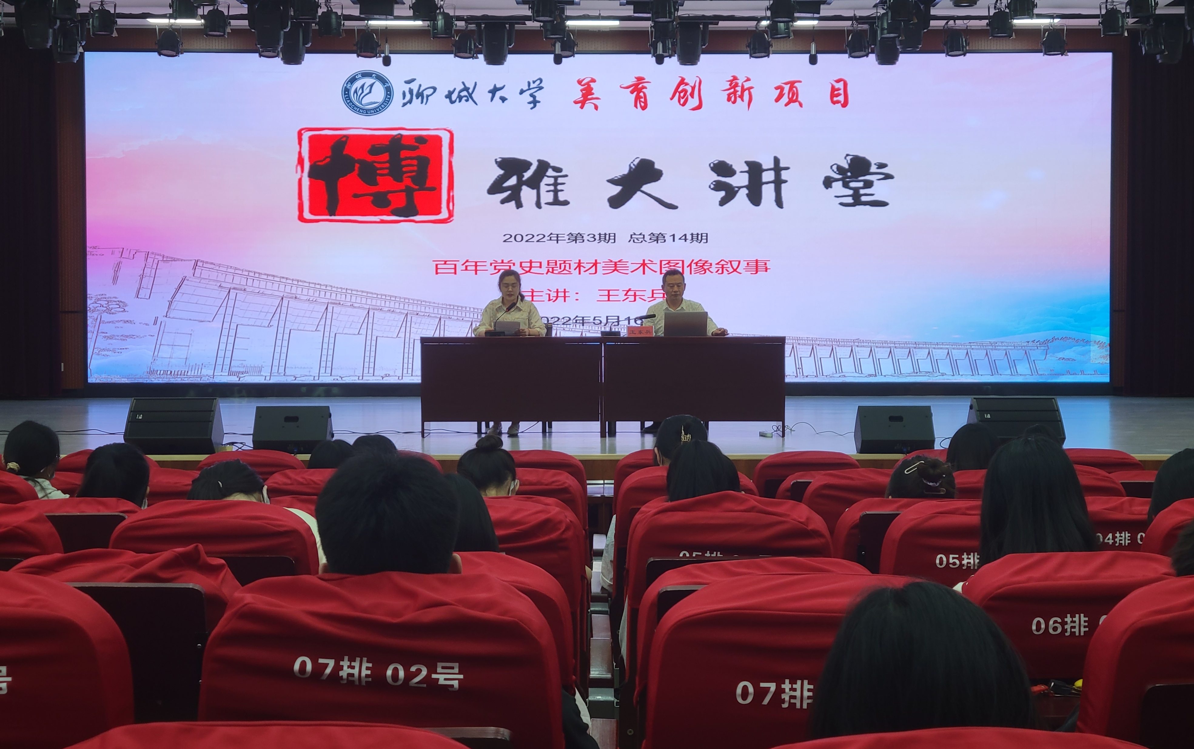 5月16日,由校团委主办、yl6809永利官网承办的yl6809永利皇宫第十四期博雅大讲堂于东校区校团委三楼青年之家举行。山东省美术家协会会员、山东省油画学会会员、yl6809永利官网副教授、硕士研究生导师王东兵应邀作题为“百年党史题材美术图像叙事”的报告,由yl6809永利官网辅导员王欣然主持,部分学生代表参加本次活动。