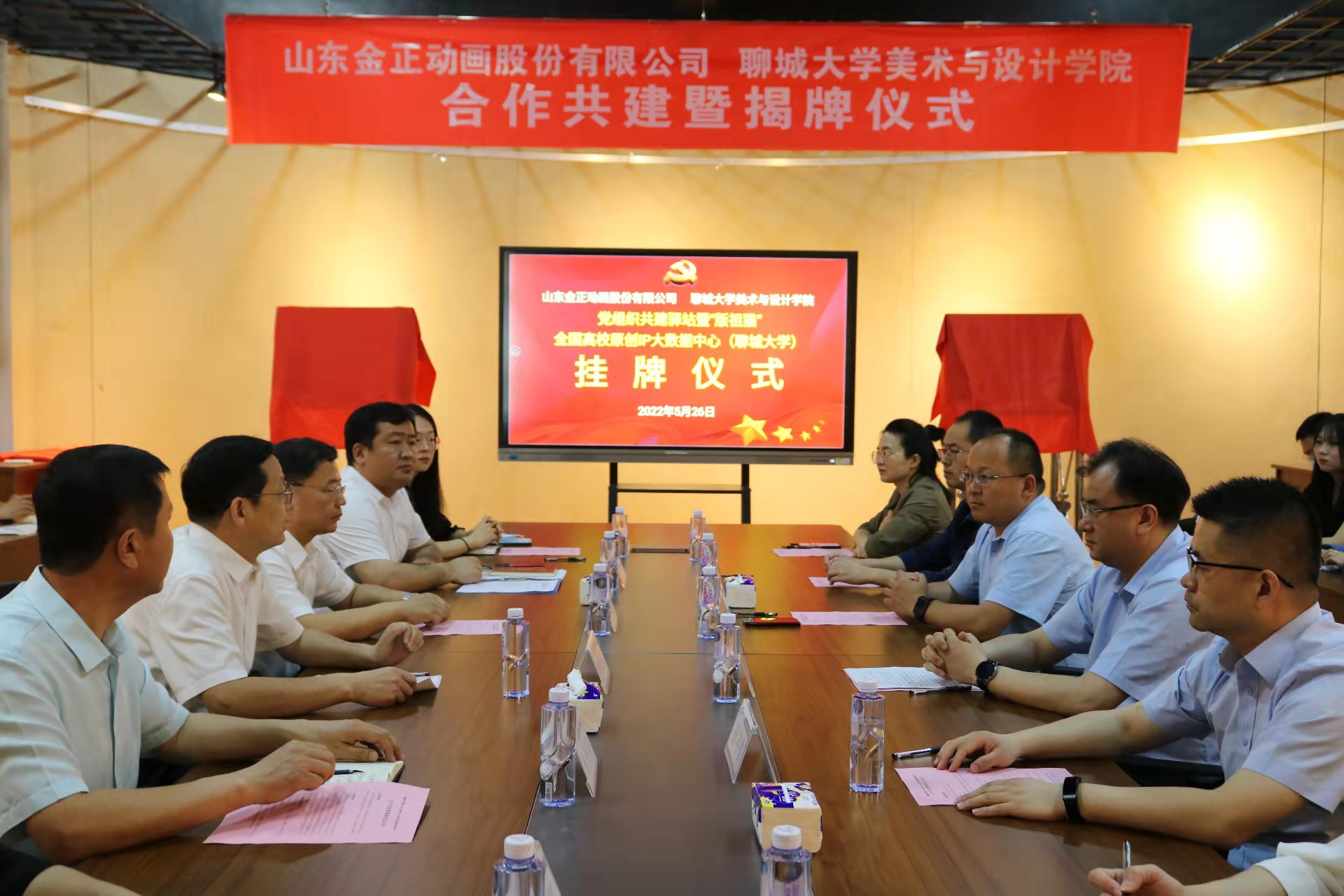 5月26日,山东金正动画股份有限公司与我院党组织共建驿站暨“版祖猫”全国高校原创IP大数据中心(yl6809永利皇宫)揭牌仪式在学院一楼多功能厅举行。校党委副书记房增福,党委常委、宣传部部长苏明海,聊城高新区党工委副书记、管理委员会副主任朱炜,中共金正动画党支部书记、金正动画公司董事长任家斌及yl6809永利官网师生代表40余人参加活动。