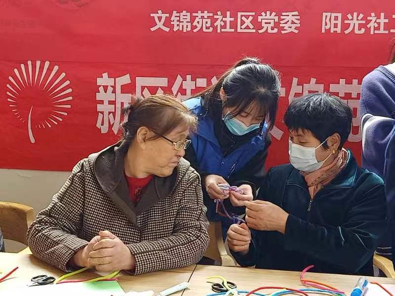 四月春风醉,雨沐皆清明。活动开始前,志愿者们提前准备好所需要的卡纸、剪刀、毛根条等活动物品以保证活动的顺利进行。到达社区后,志愿者为老人们简单介绍了今天的活动内容,老人们兴致勃勃,表示对活动产生了极高的兴趣。活动以制作春天团扇为主题,志愿者首先向老人展示成品图案,再让老人们选择自己喜欢的图案分组进行制作。首先将毛根条编织成各种形状,再用剪刀将卡纸进行裁剪,并在卡纸上书写关于春天的诗词,最后将编织好的毛根条粘贴在卡纸上。在志愿者和老人们的共同努力下,一幅幅精巧别致,妙趣横生的作品展现出来。活动结束后,为维护社区环境整洁,志愿者们仔细将现场纸屑打扫干净。
