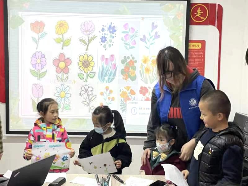 活动开始,志愿者们先为小朋友们讲述了有关花卉的知识,展示各种各样的花卉图案,小朋友们聚精会神地听着,积极回答志愿者们提出的问题。随后,志愿者们为小朋友们发放绘画所需的材料,小朋友们在志愿者们的帮助下画出了自己心目中的花卉,有单色的紫罗兰、有双色的牡丹、还有五彩缤纷的七色花……其中有一个小朋友将自己画的图案想象成了一个童话故事分享给周围的哥哥姐姐,绘声绘色的描述了一个花仙子王国,大家都为他丰富的想象力鼓掌。活动结束后,志愿者们耐心清理活动现场,将活动现场恢复到了原来的样貌,为社区留下一个干净整洁的环境。
