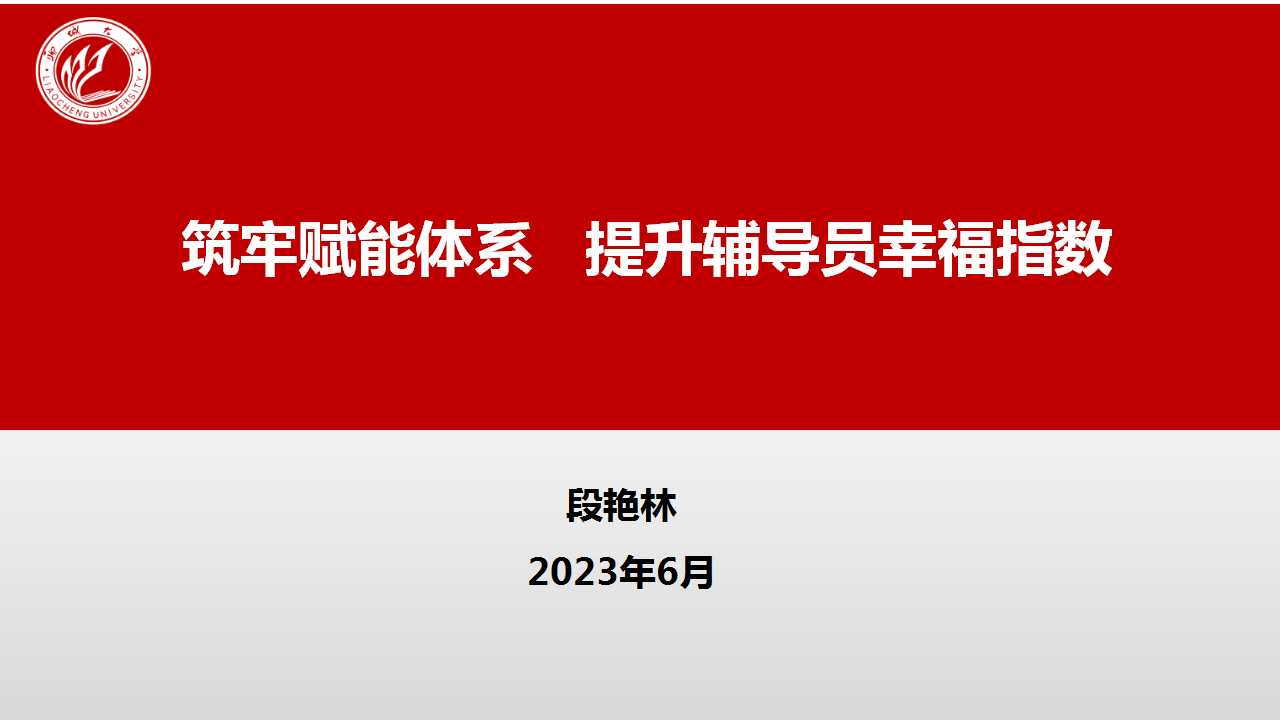 段艳林以“筑牢赋能体系,提升辅导员幸福指数”为主题进行分享,以习近平总书记在2021年中央党校中青年干部培训班开班仪式上的讲话精神为切入点,引入新时代高校辅导员的职责使命。段书记针对辅导员发展成长赋能指出:一要聚焦初心使命,增强政治素质;二要聚焦现实困境,提高职业素养;三要聚焦铸魂育人,提升人格魅力;四要聚焦职业发展,强化平台建设。最后,段书记强调:辅导员工作坚持围绕学生、关照学生、服务学生,让学生感受到关爱就在身边,关怀就在眼前。做学生学习的引路人、生活的贴心人、成长的知心人。用“化学”的眼光、思维、语言去观察、思考、表达现实世界,找到自己的“化学反应方向”,提高自己的“化学反应速率”,实现自己最美的“化学变化”。