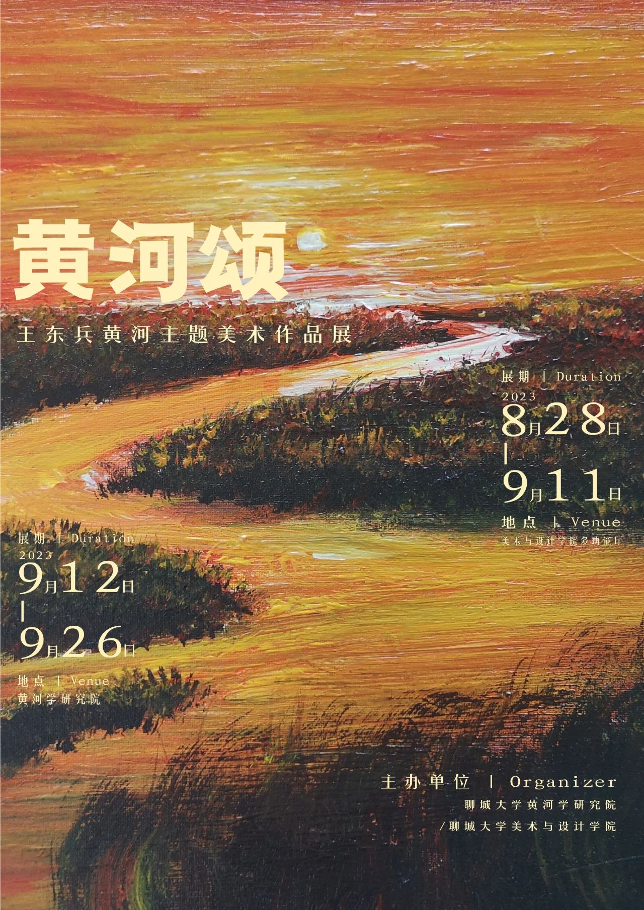 黄河颂—王东兵黄河主题美术作品展,由黄河学研究院和yl6809永利官网联合推出,分别于2023年8月28日至9月11日在yl6809永利官网多功能厅,2023年9月12日至9月26日在黄河学研究院展出。
