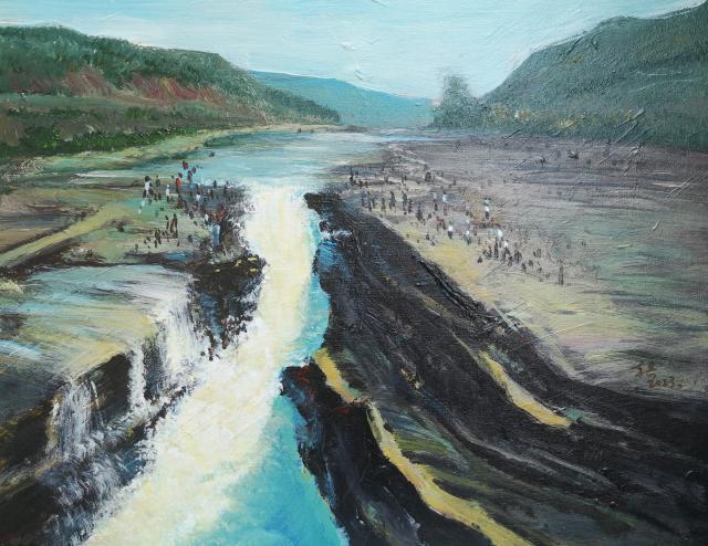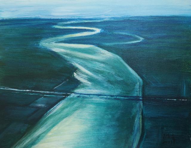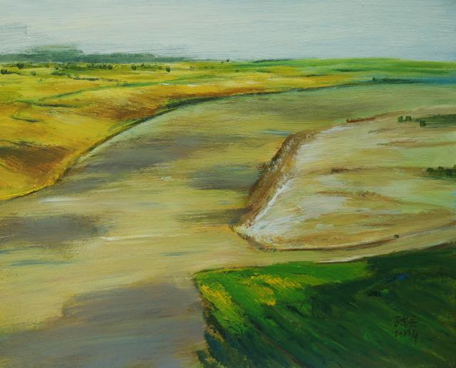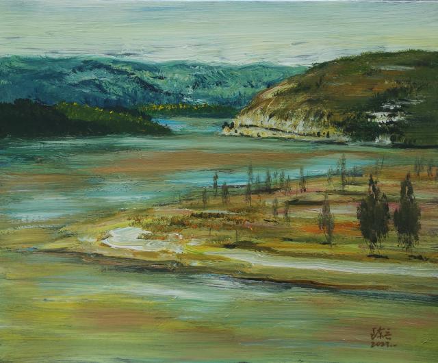 东兵兄用自己的方式,把心中的黄河涂抹在画布上,写实写意表现,都是信手而来为诸般美好的装扮。爱是那么的简单,又那么的迷恋,那创作的热情如酷暑的太阳,那赤裸的臂膀似小溪之水流淌,宣泄得一发不可收拾,短短时间创作数十幅而不止,而那胸膛依然起伏铿锵。每一幅画都是外在的风景,内在的心情,是执着的内心,灵魂行走的半径。